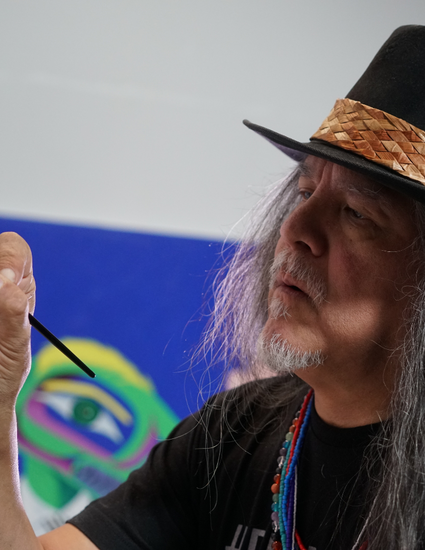 Unapologetically bold and fiercely critical, Lawrence Yuxweluptun Paul’s large-scale paintings confront colonialism, environmental destruction, and Indigenous rights with razor-sharp satire. His performance piece “An Indian Act Shooting the Indian Act” and his groundbreaking 2016 Museum of Anthropology exhibit challenge audiences to rethink Canada’s history. For Paul, art is not just a form of expression—it is an act of defiance, healing, and truth-telling.