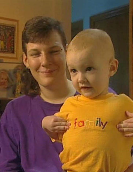 A family is made up of a man, woman and children--or is it? At the end of the 20th century, the nuclear unit is still the norm, but alternative definitions of the family --gay, lesbian, blended and extended-- are appearing. The reshaping of this sacred institution creates feelings of anxiety and chaos in some quarters. Fighting for the Family profiles a number of cohabitation and parental arrangements to show that it is love and respect, and not preconceived notions, that make a family work. Keith and Gary are partners. They've both maintained close friendships and ties with their former wives and share familial responsibilities for their five children. Laura, a lesbian, chose James, a gay man, to father her child. Laura found the idea of a nuclear family very limiting so she worked to create an extended family that includes both her partner and also James and his partner, who all provide support and resources. Members of the Coalition for Parental Rights and a teacher provide a counter-viewpoint explaining why they feel same-sex relationships should not be encouraged within the educational environment. A family therapist comments on what is needed to raise a healthy, well-adjusted child. A sociologist from Simon Fraser University gives on overview of what family units looked like in the past and comments on their fluidity. She discusses how the family has become more of a political issue in recent years and points out that the mobilization of differing viewpoints will continue to lead to heated debates in the future.