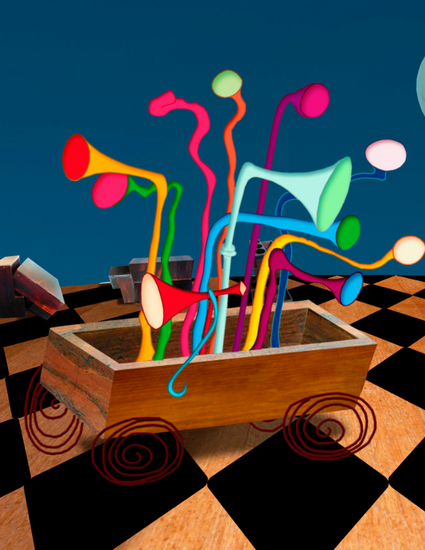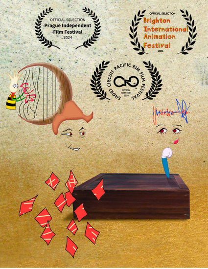 The film is visually inspired by Joan Miró’s painting, The Harlequin’s Carnival: a canvas of musical shapes, eyes, ripples, tunes, rogues and graces suspended in a world of sentient potential.