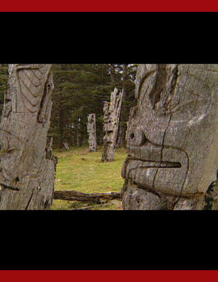 The accumulation of wealth has been linked to the collection of high art throughout most of human existence. With Haida culture, this is particularly true. In the potlatch system, a practice outlawed by the federal government during the early 20th century, the display of crests and the carving of totems were usually at the behest of important chiefs. Jim Hart became Chief 7Idansuu (Edenshaw) in 1998. In an elaborate ceremony, he took possession of a chiefly name and along with it the range of art that becomes part of the chief's regalia. In preparation, Hart carved a 60-foot totem pole, commissioned a headdress frontlet and the weaving of a chief's robe, and organized a two-day potlatch. In Chiefly Possessions, Chief 7Idansuu recalls the event two years later, offering a glimpse of the process during a trip to his clan's traditional village site at Kiusta.