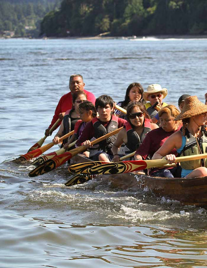 What began with the Heiltsuk First Nation's building of a canoe, the first in over 150 years, and paddling it to Vancouver for EXPO '86 has become a movement reviving the ocean-going canoe tradition on the West Coast. In 1993, the Heiltsuk's Qatuwas Festival journey saw 14 canoes paddle to Bella Bella. Enthusiasm has grown and now there are annual tribal journeys in the the Pacific Northwest. In the spirit of qatuwas which means people gathering together, these tribal journeys bring together people of all ages and reconnect them on the water with the traditional ways of their ancestors. The journeys can take several weeks and build fortitude, stamina, identity and self-esteem for participants. One of the canoe families taking part in the Tribal Journeys is Kw'umut Lelum on Snuneymuxw territory, Vancouver Island. This Aboriginal-based child and family services organization considers tribal journey to play an important role in healing, helping children find their connection to ways of their ancestors and to the water. Elder Willie Seymour, of the Kw'umut Lelum canoe family, teaches that respect is the main rule in life, and it begins with self-respect. With self-respect comes the restoration of dignity and confidence and leads to respect for others, the elements and nature. The children are guided by Elder Willie Seymour and support boat operator Arnie Robinson along their journey on the water.