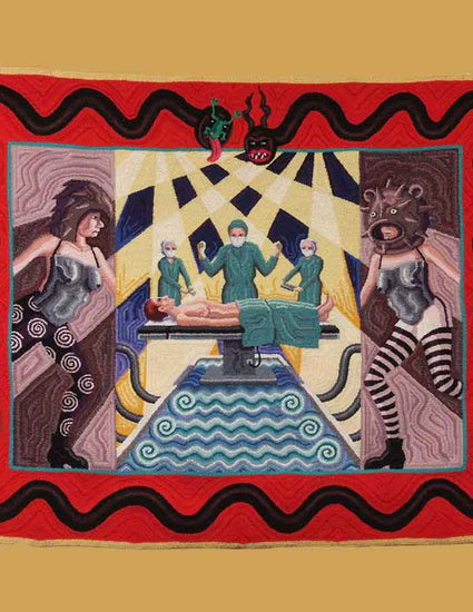 Nancy Edell (1942-2005) is best known for the transgressive, representational works she created using an unlikely medium: rug hooking. Her practice also included woodcuts, monotypes, drawings and animated films. Her career began in Nebraska, ended in Halifax and included many years in Winnipeg. Throughout, Nancy was rigorous in her craft and passionate about her feminist content. She also inspired many students at the Nova Scotia College of Art & Design.